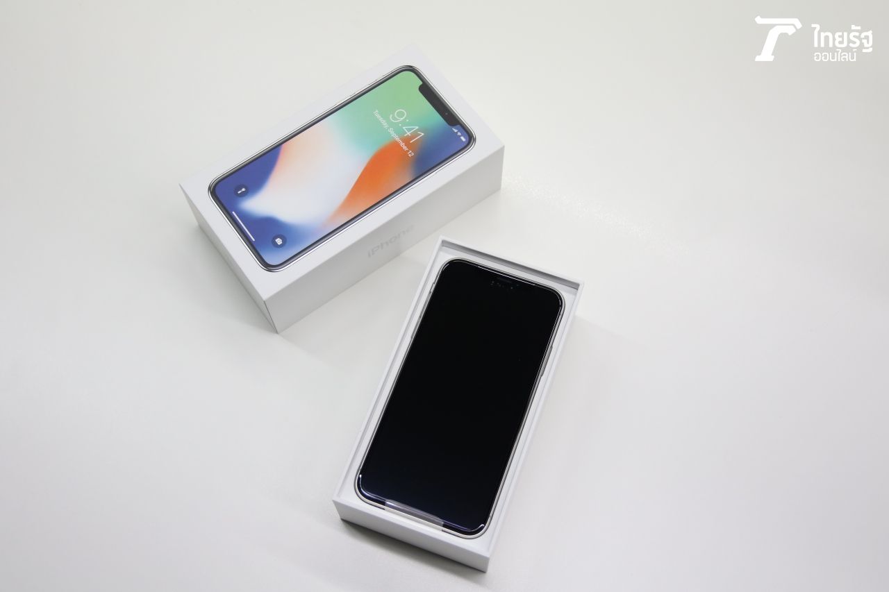 นอกจากตัวเครื่องไอโฟน X แล้ว เมื่อเปิดกล่องมาจะเจอกับซองกระดาษที่ใส่คู่มือการใช้งานเบื้องต้น เข็มจิ้มถาดซิมและสติกเกอร์โลโก้ USB Power Adapter ขนาดปกติ, สาย Lightning ขนาด 1 เมตร, หูฟัง, และที่ขาดไม่ได้เลยคือ Lightning to 3.5 mm Headphone Jack Adapter ที่แถมมาพร้อมหูฟังด้วย