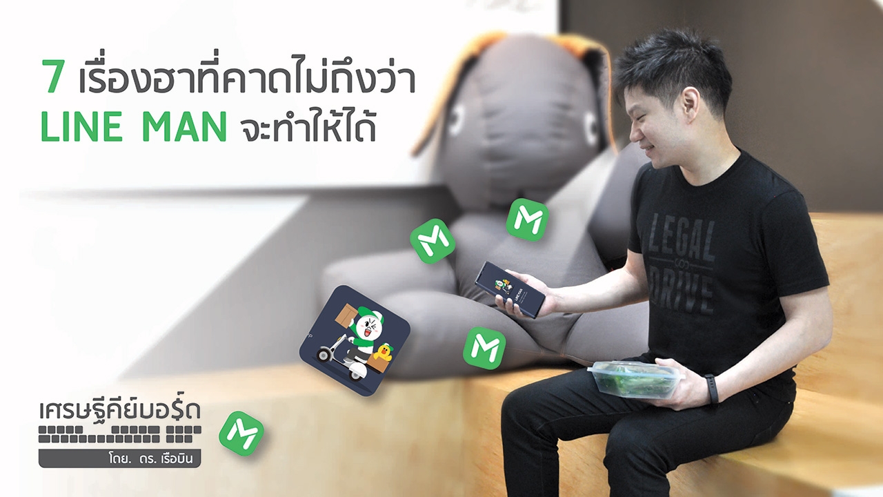 LINE MAN ถือเป็นนวัตกรรมที่ใช้ประโยชน์ของเทคโนโลยีนำมาช่วยอำนวยความสะดวกกับงานบริการที่ผมชอบและใช้บ่อยมากที่สุดตัวหนึ่ง แน่นอนครับ หลักๆ ก็คือการใช้บริการสั่งอาหารและส่งของเหมือนกับท่านผู้อ่านหลายๆ คน ผมสามารถสั่งอาหารได้จากทุกร้านที่ผมอยากกิน (เกือบ) ทุกเวลา ไม่ว่าตอนนั้นผมจะอยู่ที่ไหนก็ตาม ที่บ้าน ที่ทำงาน ประชุมนอกสถานที่ หรือกำลังพักผ่อนอยู่บนยอดเขา (เคยโทรสั่งแล้ว พี่เขามาส่งให้จริงๆ ครับ บริการดี สุดยอดมากๆ)