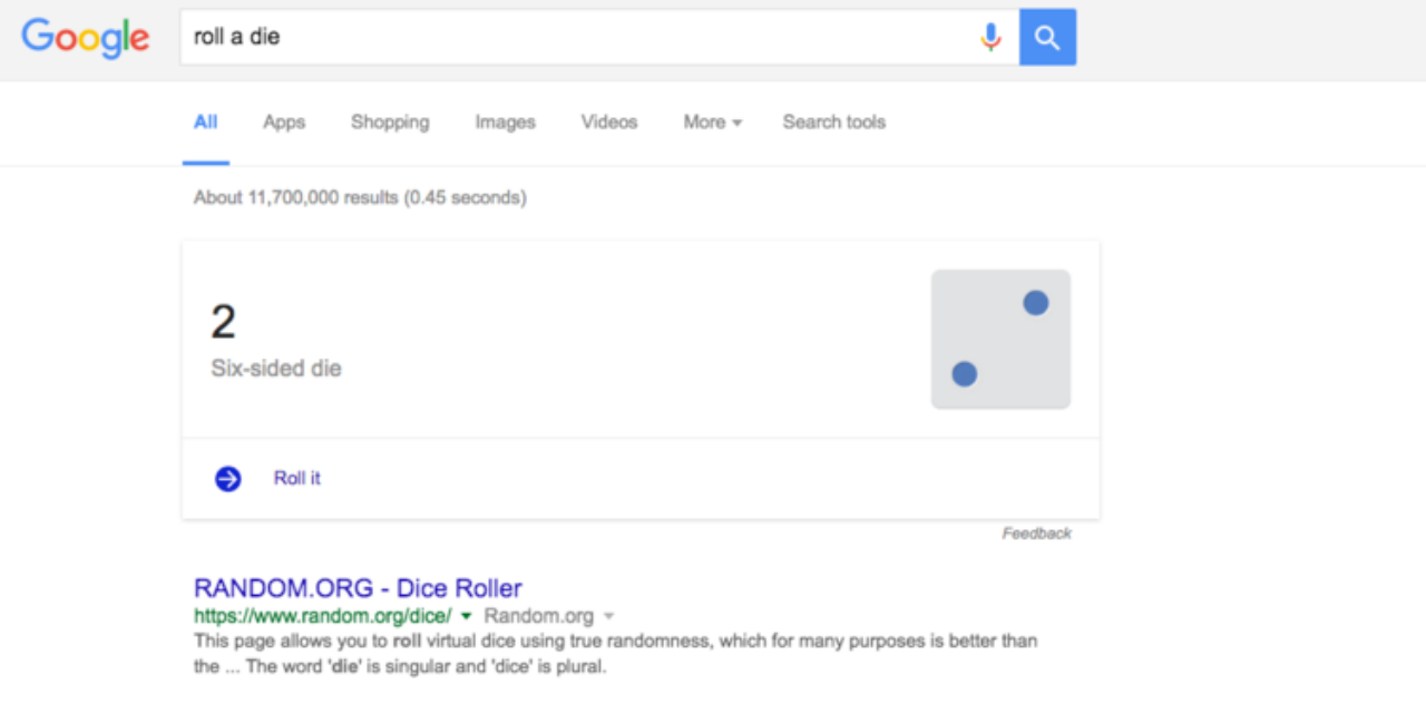 อยากเล่นเกม แต่ติดปัญหาที่ไม่มีลูกเต๋า ก็ไม่ต้องวิ่งออกไปหาซื้อให้เสียเวลา เพียงเสิร์ชหา เราก็ได้ลูกเต๋าไว้ทอยกันแล้ว