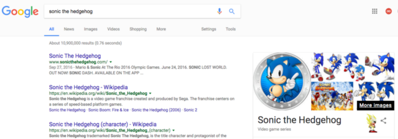 หากคุณเกิดในยุค 90s แน่นอนว่าต้องรู้จักเกมที่ฮิตที่สุดในยุคนั้น นั่นก็คือเกมวิ่ง ที่มีเจ้าเม่นสีฟ้าเป็นตัววิ่ง เมื่อเราค้นหาคำนี้ ด้านขวาสุดจะมีรูปเจ้าเม่นฟ้า ที่พอเราคลิกไปเรื่อยๆ เจ้าเม่นฟ้าก็จะแปลงร่างเป็น Super Sonic