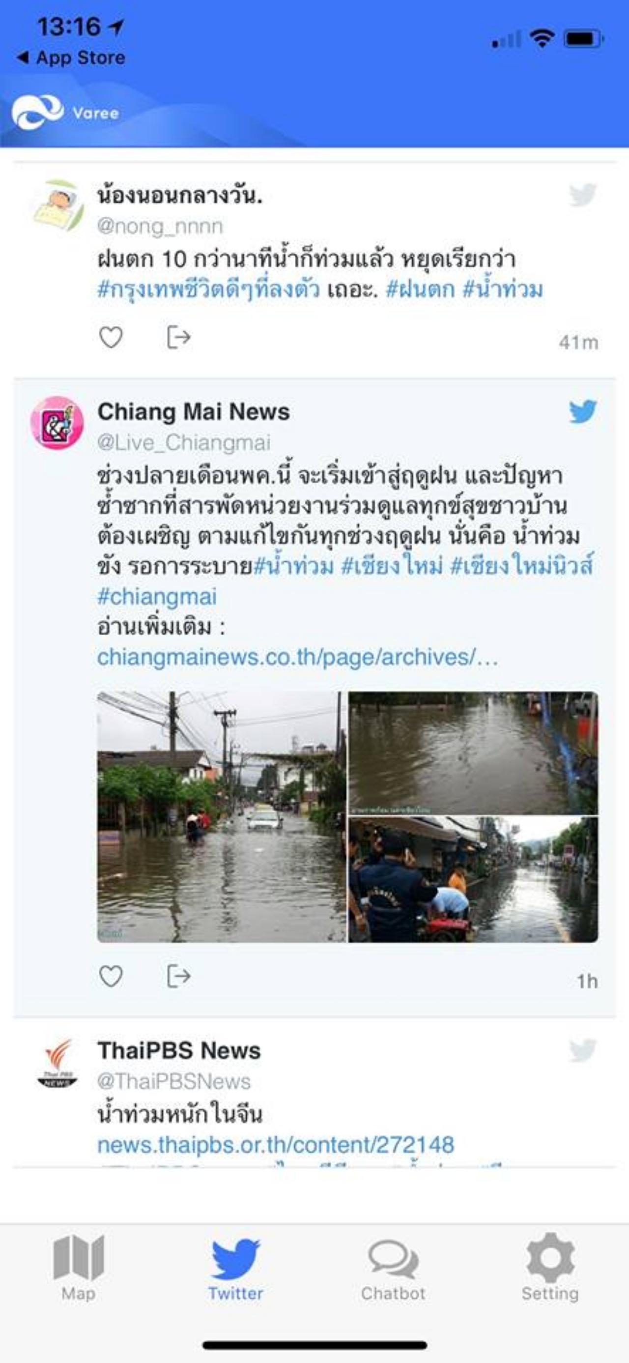 คุณสามารถตรวจสอบข้อมูลข่าวสารผ่าน #น้ำท่วม ของ twitter ได้อีกด้วย