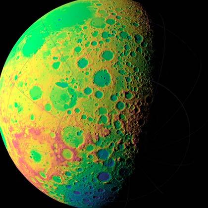 แผนที่ภูมิประเทศขั้วใต้ของดวงจันทร์ที่เห็นในภาพนี้ได้จากข้อมูลของยานอวกาศลูนาร์รีคอนแนสเซนส์ออร์-บิเตอร์ (แอลอาร์โอ) ซึ่งข้อมูลจากยานอวกาศนี้ช่วยให้นักวิจัยนำมาสร้างแผนที่ดวงจันทร์ที่ชัดเจนและสมบูรณ์ ทันสมัยที่สุด สำหรับสีเพี้ยนในแผนที่แสดงถึงระดับของพื้นที่ โดยสีแดงเป็นบริเวณที่มีความสูงสุด และสีน้ำเงินเป็นบริเวณต่ำสุด.