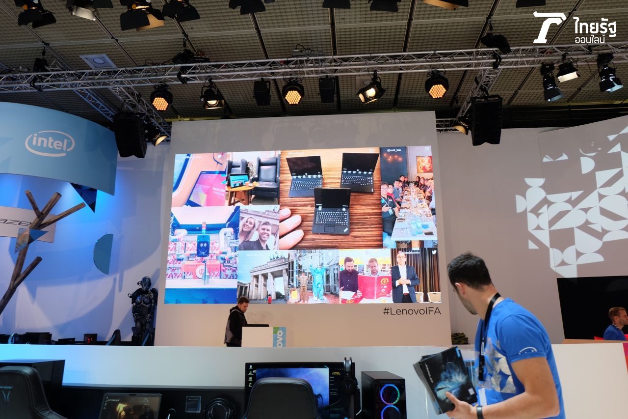 เริ่มต้นที่บูธ Lenovo ซึ่งปีนี้มีการเปิดตัวนวัตกรรมใหม่หลายชิ้น ไม่ว่าจะเป็นโน้ตบุ๊กรุ่นใหม่อย่าง Yoga Book C930, Yoga C930, Yoga C630, และ ThinkPad X1 Extreme โน้ตบุ๊กแสนทรงพลัง