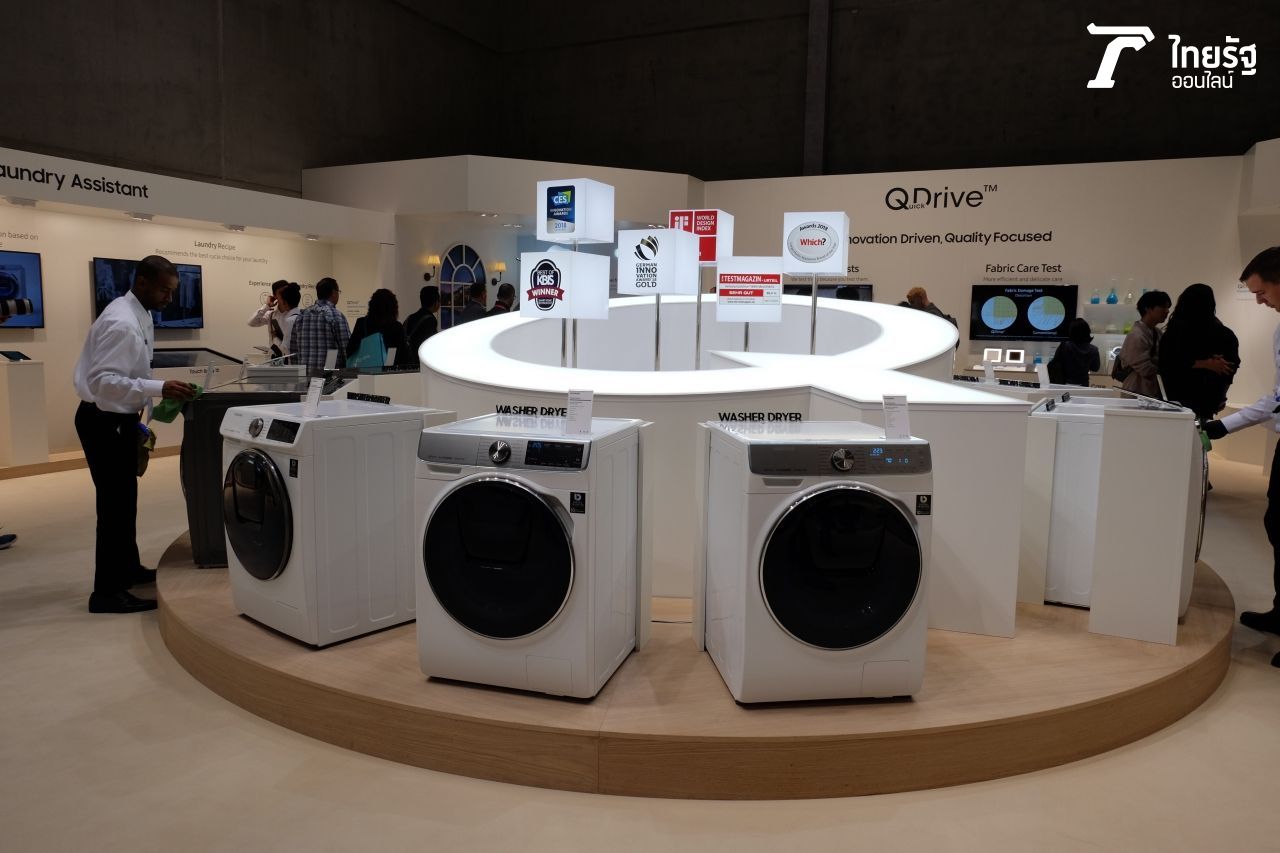 มาต่อกันที่โซนของซัมซุง เพราะนี่ก็เป็นอีกแบรนด์ที่ผู้คนให้ความสนใจเยอะมาก โดยเฉพาะในโซนของเทคโนโลยีภายในบ้านอย่างเครื่องซักผ้าตัวใหม่ Quick Drive ด้วยความสามารถในการซักผ้าในเวลาที่น้อยลงถึงครึ่งหนึ่ง โดยไม่ทำให้ประสิทธิภาพการซักลดลงและช่วยเพิ่มเวลาว่างให้แก่ผู้บริโภค พร้อมกับ Laundry Planner ซึ่งเป็นฟีเจอร์ที่ช่วยลดเวลาที่เสียไปกับการซักผ้า ให้เลือกได้ว่าจะเริ่มซักเมื่อไร แล้วหยุดเมื่อไร