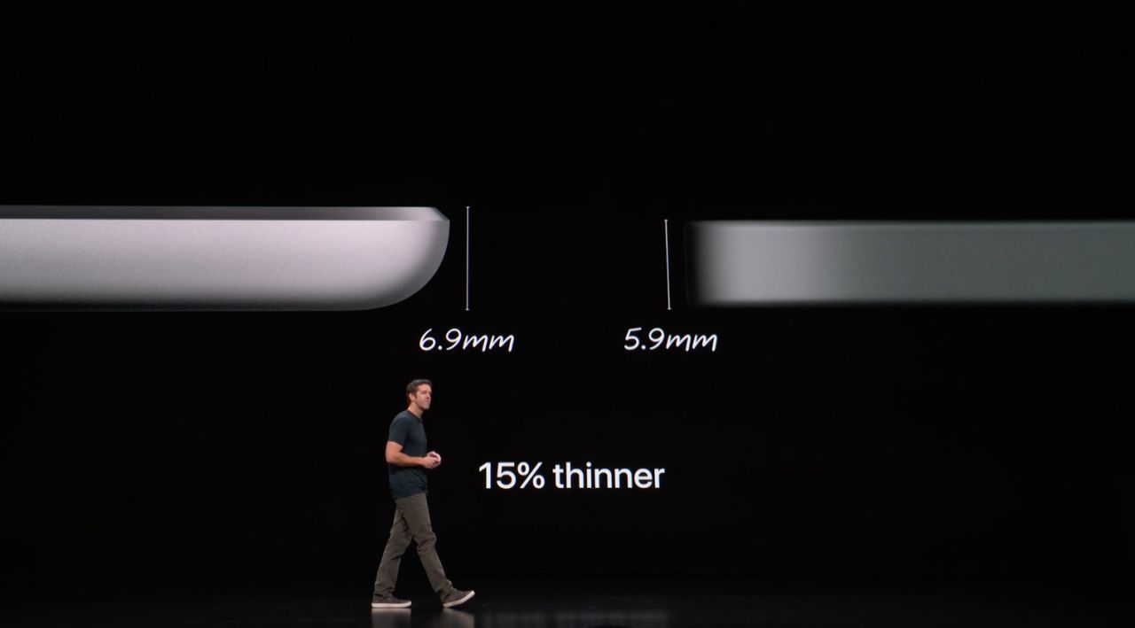 จะเห็นได้ว่าไอแพดรุ่นใหม่นี้มีดีไซน์ใหม่ด้วยการลดขอบเครื่องลง วัสดุเป็นอะลูมิเนียมตัดขอบ ไม่มีปุ่มโฮมด้านล่าง เพราะใช้การปลดล็อกแบบเดียวกับ iPhone ตระกูล X มาพร้อมกับช่องต่อ USB-C ใหม่ เพื่อรองรับการชาร์จเร็ว, การชาร์จไฟให้อุปกรณ์อื่นๆ, การต่อจอนอก 5K หรือแม้แต่การเชื่อมต่อกับอุปกรณ์เสริมอื่นๆ