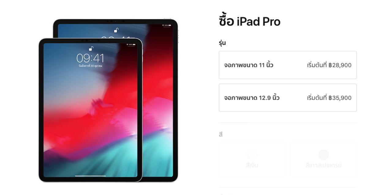 มี 2 สีให้เลือกคือ สีเงินและ สีสเปซเกรย์มีความจุให้เลือกถึง 4 ระดับ ได้แก่ 64GB, 256GB, 512GB, และ 1TB ขนาด 11 นิ้ว มีราคาเริ่มต้นที่ 28,900 บาท ส่วนขนาด 12.9 นิ้ว ราคาเริ่มต้นที่ 35,900 บาท