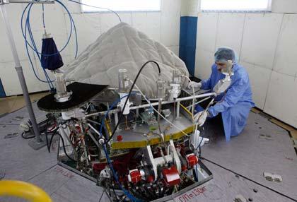 ภาพจากแฟ้มเมื่อเดือนสิงหาคมปีที่แล้ว วิศวกรทำงานอยู่กับดาวเทียมจีโออิค 2 ซึ่งสำนักข่าวอินเตอร์แฟกซ์ของรัสเซีย รายงานว่าล่าสุดได้ปล่อยออกไปเมื่อ 1 ก.พ. ที่ผ่านมา และไม่สามารถติดต่อกับศูนย์ควบคุมภาคพื้นได้ตามเวลาที่กำหนด.