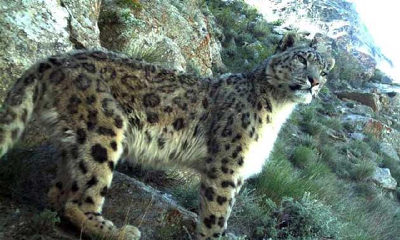 ภาพถ่ายจากกล้องดักถ่ายสัตว์ป่าบันทึกภาพไว้เมื่อ 24 ส.ค.2552 ขณะเสือดาวหิมะยืนอยู่บนเนินเขาในป่าวาข่านคอร์ริดอร์ ภาคตะวันออกเฉียงเหนือของอัฟกานิสถาน ล่าสุดสมาคมอนุรักษ์สัตว์ป่าแถลงว่า ประชากรเสือดาวหิมะ ซึ่งเป็นสัตว์ที่หลบหลีกซ่อนตัวเก่ง ตามแนวภูเขาเอเชียกลาง นั้นเริ่มมีที่อยู่เงียบสงบน้อยลง และเริ่มตกอยู่ในภาวะถูกคุกคาม.