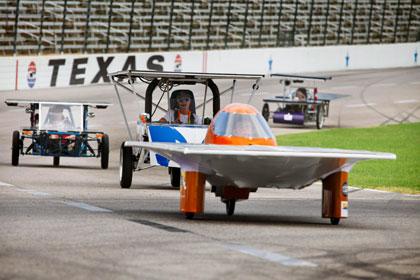 นักแข่งในการแข่งรถ “โซลาร์คาร์ชาเลนจ์ 2011 ” ทิ้งโค้งเข้าสนามแข่งเท็กซัสมอเตอร์สปีดเวย์ ในเมืองฟอร์ทเวิร์ธ รัฐเท็กซัส โดยงานนี้มีทีมจากโรงเรียนมัธยม ปลาย 19 โรงเรียนจาก 10 รัฐ เข้าแข่งขันซึ่งกินเวลา 4 วัน เป็นโอกาสพิเศษที่เด็กๆ จะได้แข่งความสามารถในการนำพารถพลังแสงอาทิตย์ชิงชัยรอบสนามรูปไข่ ความยาวราว 2.4 กม. ที่สหรัฐ-อเมริกา.