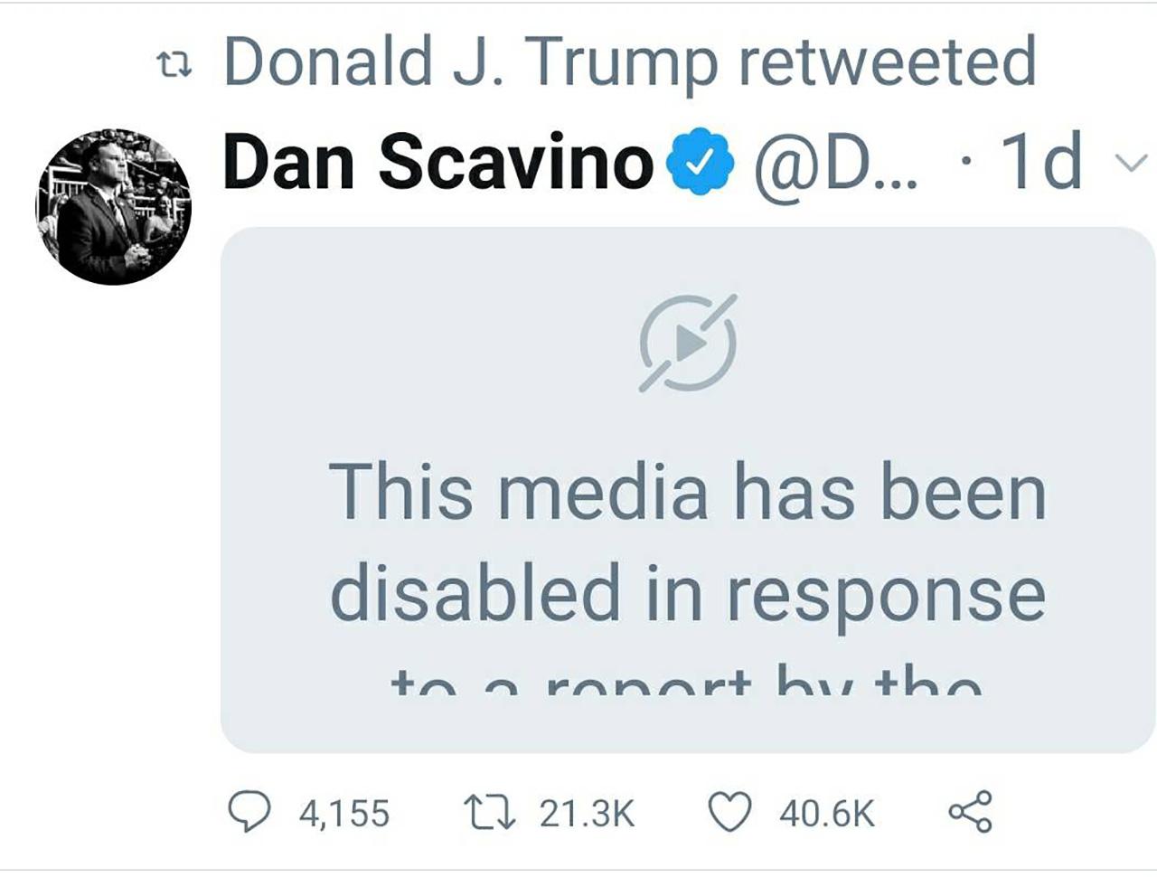 ทวิตเตอร์ได้ลบคลิปวิดีโอนี้ออกจากหน้าทวิตเตอร์ของทรัมป์ และขึ้นข้อความว่า สรุปว่าคลิปนี้ถูกปิด เพราะถูกรายงานว่าละเมิดลิขสิทธิ์ หลังจากได้รับการแจ้งจากค่ายเพลง MSE (Machine Shop Entertainment)