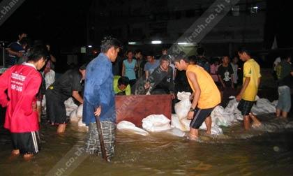 หากหนักหนาจริงๆ ประตูหน้าต่างของเราดูจะอ่อนแอรับแรงดันน้ำไม่ไหวจริงๆ ก็ต้องเอาไม้มาตีพาดขวางช่วยรับแรง หรือเอาของหนักๆมาวางช่วยดันประตูเอาไว้ (ต้องเป็นประตูด้านที่เราไม่ใช้โดยปกตินะครับ ไม่เช่นนั้นอาจจะมีปัญหาตอนที่เราจะหนีออกจากบ้าน หรือตอนที่คนเขาจะเข้ามาช่วยเราในบ้าน ยามเกิดวิกฤติครับ)