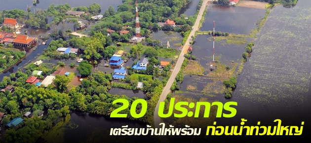 เมื่อนานมาแล้ว ปี พ.ศ. 2538 น้ำท่วมประเทศไทย ผมเขียนหนังสือร้อยพันปัญหาในการก่อสร้างเล่มที่ 3 เรื่อง “บ้านหลังน้ำท่วม” โดยมีเป้าหมายในการให้คนที่มีทุกข์จากการถูกน้ำท่วม ทราบแนวทางในการปรับปรุงบ้านของตนเองอย่างถูกวิธี และประหยัดงบประมาณ ซึ่งเป็นหนังสือที่ไม่มีลิขสิทธิ์ใดๆ จึงมีผู้จัดพิมพ์เพื่อแจกจ่ายไปเป็นจำนวนหลายแสนเล่ม มาถึงวันนี้ คนไทยทั้งหลายเข้าใจเรื่องน้ำท่วมมากขึ้น ศึกษาข่าวสารบนความไม่ประมาทมากขึ้น และเริ่มมีการ “เตรียมตัว” เพื่อจัดเตรียมบ้านให้พร้อมก่อนที่น้ำจะมา จึงขอเขียนบันทึก “บัญญัติ 20 ประการ เตรียมบ้านก่อนน้ำท่วม” แบบสั้นกระชับนี้ขึ้น ซึ่งหวังว่าคงจะพอมีประโยชน์ครับ ขอให้หลับตาแล้วนึกถึงภาพว่า เรากำลัง “เตรียมเมืองรับศึกสงคราม” นะครับ