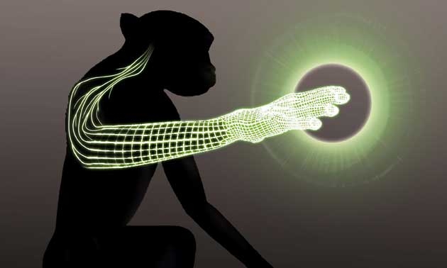ภาพเผยแพร่จากมหาวิทยาลัยดุค เป็นภาพอวตารลิงที่บริเวณท่อนแขนส่วนบนมีลักษณะเสมือนจริง เนื่องจากลิงถูกฝังขั้วไฟฟ้าเข้าที่สมองเพื่อให้สามารถมองเห็น ขยับวัตถุเสมือนจริง และรู้สึกถึงผิวสัมผัสเทียมได้ อันเป็นอีกก้าวหนึ่งที่จะช่วยผู้ป่วยอัมพาตให้รับรู้ความรู้สึกพื้นผิวได้ งานนี้ตีพิมพ์ในวารสารเนเจอร์ของอังกฤษ เป็นผลงานของมิเกล นิโคเลลิส ศาสตราจารย์ด้านประสาทวิทยา มหาวิทยาลัยดุค ที่นอร์ทแคโรไลนา.