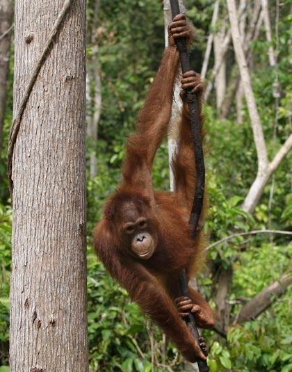 รายงานการสำรวจครั้งใหม่ชี้ให้เห็นว่า ชาวบ้านที่อาศัยอยู่บนฝั่งบอร์เนียวของอินโดนีเซียนั้น ฆ่าอุรังอุตังไปอย่างน้อยปีละ 750 ตัว ด้วยเหตุผลว่าต้องปกป้องพืชไร่ของตนจากการถูกรุกราน ในขณะที่บางคนบอกว่าฆ่าเอาเนื้อ ในภาพเป็นภาพจากแฟ้มเมื่อ 9 มกราคมที่ผ่านมา ที่ตันจุง ฮาเนา กาลิมันตันกลาง.