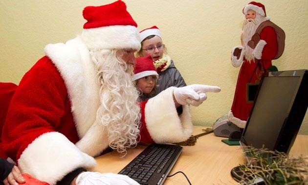 ชายหนุ่มแต่งตัวเป็นคุณพ่อคริสต์มาส ชี้ชวนให้เด็กดูหน้าจอคอมพิวเตอร์ระหว่างตอบจดหมายที่สำนักงานไปรษณีย์ คริสต์มาสพิเศษ ในหมู่บ้านฮิมเมลพ์ฟอร์ท (ประตูสวรรค์) ทางเหนือของเบอร์ลิน ประเทศเยอรมนี สำนักงานไปรษณีย์แห่งนี้เปิดให้บริการงานคริสต์มาสเป็นกรณีพิเศษ โดยจะตอบเมล์ที่จ่าหน้าถึงซานตาคลอสที่เด็กจากทั่ว โลกส่งมาถึง ขณะนี้มีจดหมายราว 20,000 ฉบับมาถึงไปรษณีย์แล้ว และผู้จัดคาดว่าจะได้รับ จดหมายและคำอธิษฐานประมาณ 280,000 ฉบับ จากเด็กๆทั่วโลกที่เขียน เป็นภาษาต่างๆ 17 ภาษา.