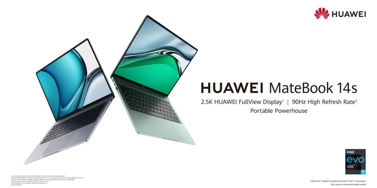 ผลิตภัณฑ์ต่อมาที่หัวเว่ยเตรียมที่จะเข้ามาวางจำหน่ายในประเทศไทย เป็นผลิตภัณฑ์ในกลุ่มโน้ตบุ๊ก โดยมาในชื่อ Huawei MateBook 14s