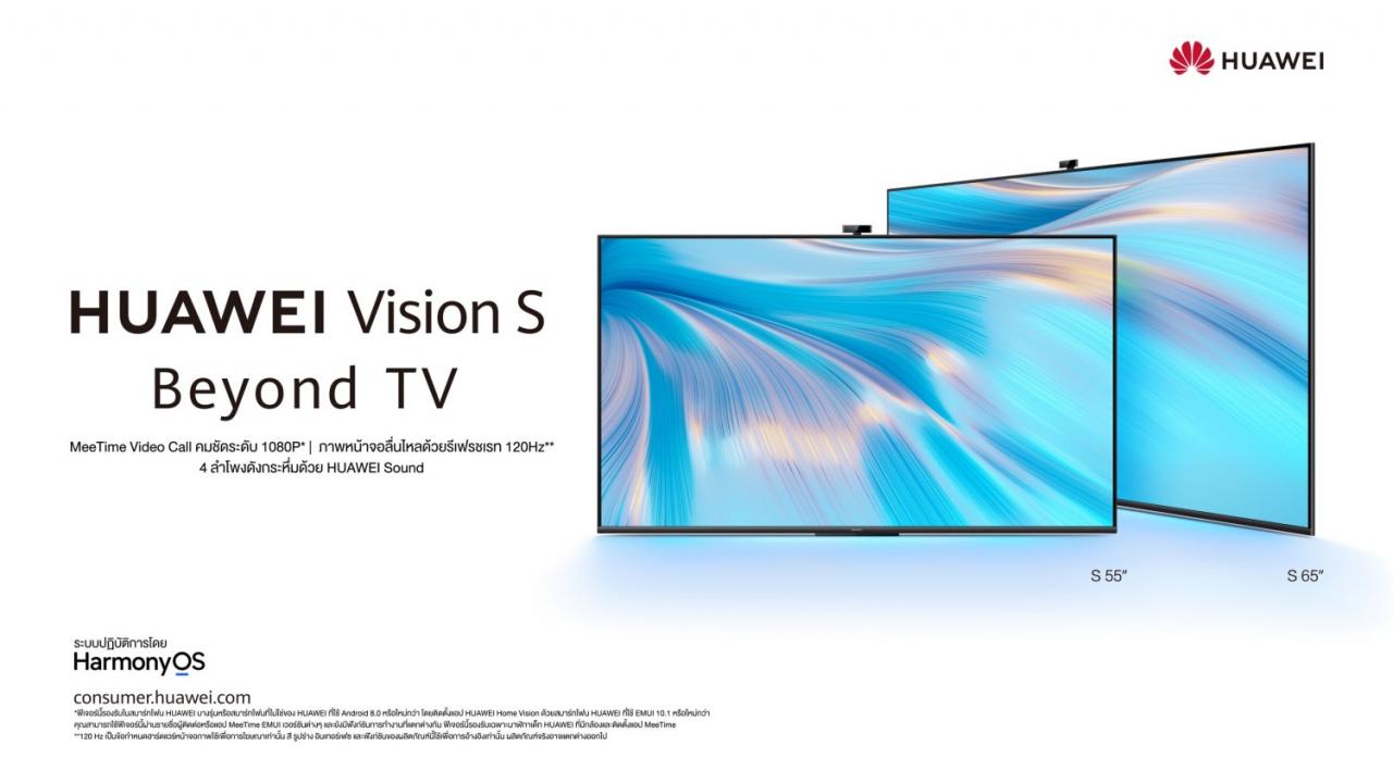 Huawei Vision S หน้าจอ 4K มีให้เลือกขนาด 55 นิ้ว และ 65 นิ้ว รองรับอัตรารีเฟรชสูง 120Hz พร้อมด้วยระบบปกป้องดวงตาด้วยการลดแสงสีฟ้าและการกะพริบของหน้าจอ และมีลำโพง 10W จำนวน 4 ตัว เน้นการดูคอนเทนต์สตรีมมิง.