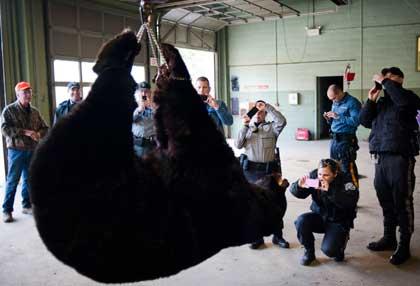 ตำรวจรัฐนิวเจอร์ซีย์ถ่ายภาพหมีดำตัวใหญ่ทำลายสถิติของนิวเจอร์ซีย์ คือน้ำหนัก 376 กก. ที่แฟรงคลิน รัฐนิวเจอร์ซีย์ สหรัฐอเมริกา ข้อมูลจากกรมสัตว์ป่าและประ-มงแจ้งว่า ในฤดูกาลนี้หมีถูกฆ่าไปเกือบ 400 ตัวแล้ว.