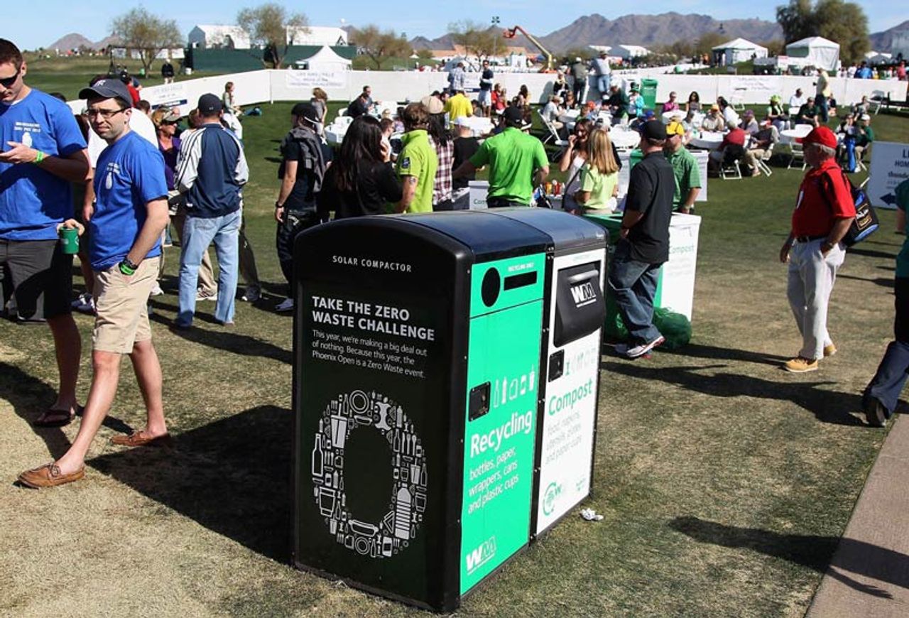 ตู้พลังแสงอาทิตย์ขนาดกะทัดรัดที่เห็นในภาพ เป็นระบบกำจัดของเสียที่ใช้เทคโนโลยี แสงอาทิตย์ นำมาติดตั้งไว้ในงานการจัดการของเสียฟีนิกซ์โอเพ่น ที่เมืองสกอตต์เดล รัฐอริโซนา สหรัฐอเมริกา สามารถใช้กำจัดของเสียจากอาหารได้อย่างมีประสิทธิภาพมาก ขึ้นกว่าเก่า.