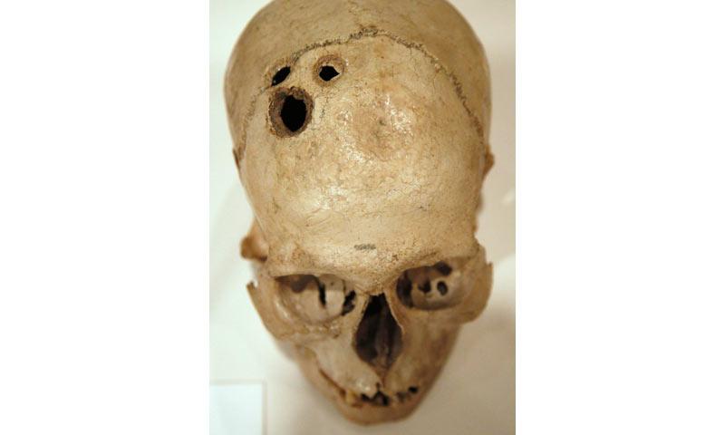 กะโหลกศีรษะแสดงอยู่ในงานสมาคมวิทยาศาสตร์เทคโนโลยี ที่กรุงลอนดอน มีรอยถูกเจาะ สับแยกอย่างหนัก ในงานยังมีการนำกะโหลกศีรษะ บุคคลผู้มีชื่อเสียงในประวัติศาสตร์หลายคน ออกมาโชว์ด้วย.