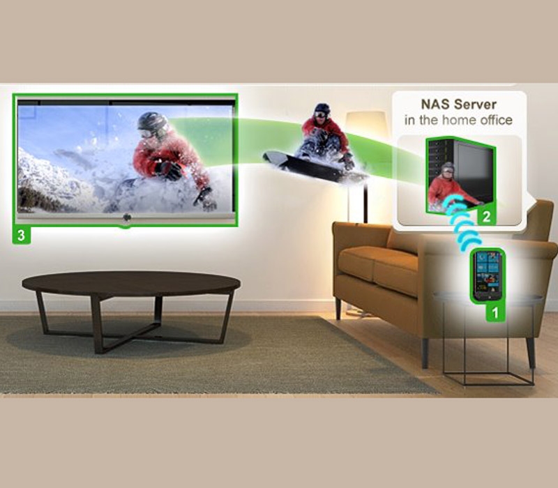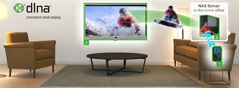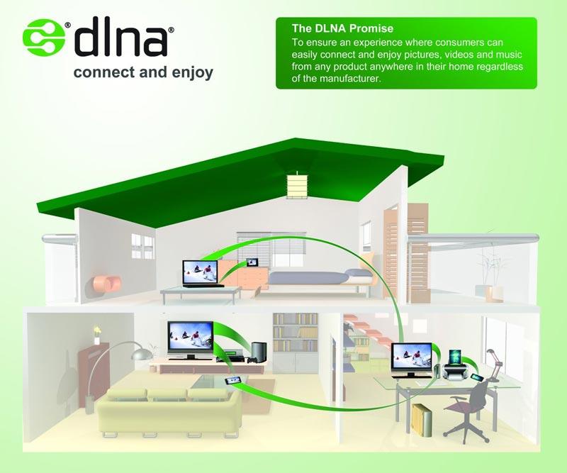 เทคโนโลยีการส่งข้อมูลผ่าน Wi-Fi ไปยังอุปกรณ์ตระกูลสมาร์ทนี้มีชื่อมาตรฐานในวงการอุตสาหกรรมว่า DLNA ครับ ย่อมาจาก Digital Living Network Alliance ซึ่งเป็นชื่อกลุ่มของบริษัทด้านไอทีที่มาร่วมกันสร้างมาตรฐานนี้ (บางบริษัทจะใช้ชื่อทางการค้าที่ต่างกันออกไป เช่น ซัมซุงจะเรียกมันว่า AllShare แทน แต่กระบวนการทำงานเหมือนกัน)