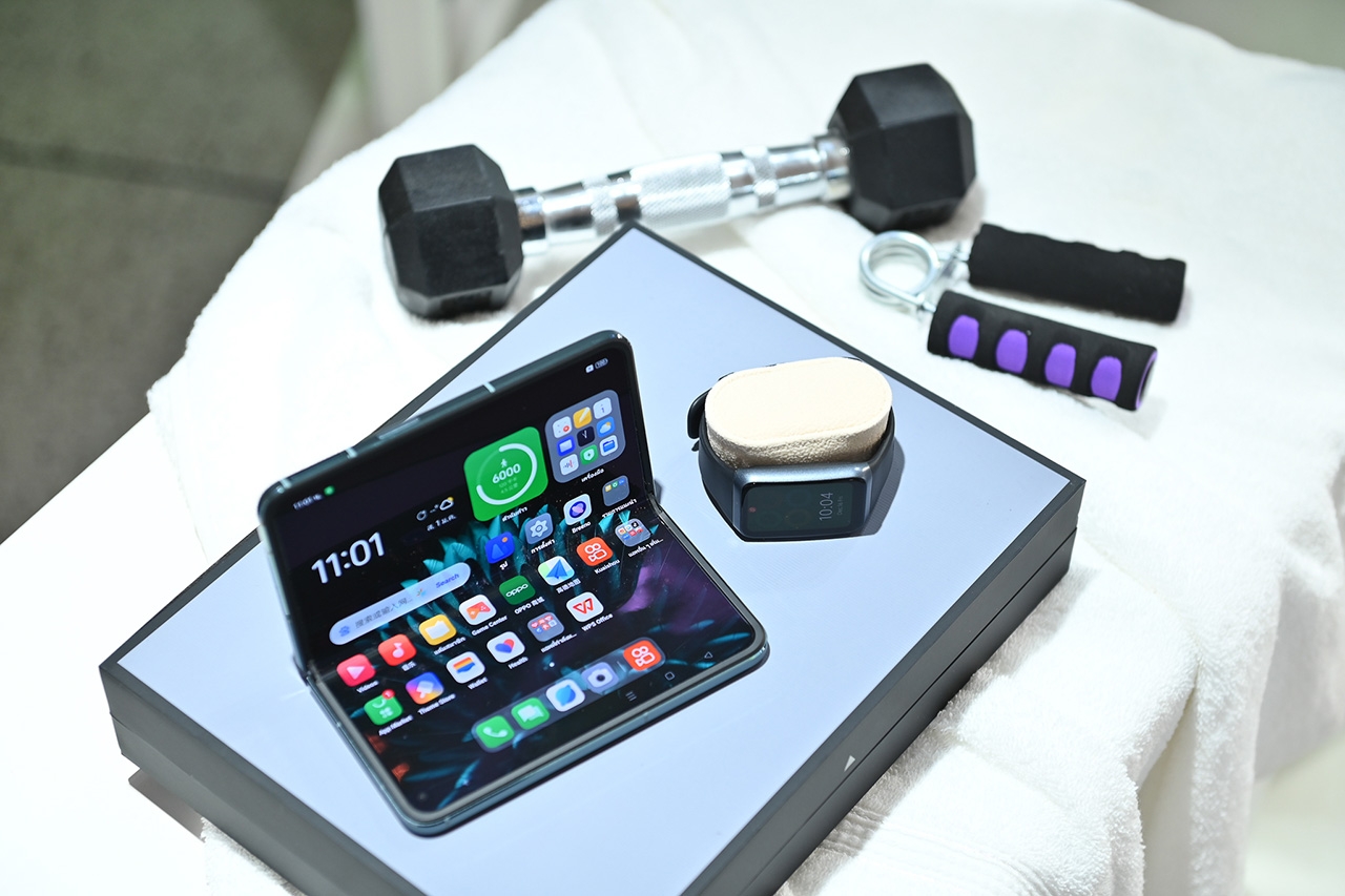 ไม่เพียงเท่านั้น ยังมีนวัตกรรมสุดล้ำอย่าง OHealth H1 ผลิตภัณฑ์ตรวจสอบสุขภาพที่รวมฟังก์ชันการใช้งานแบบ 6 in 1 ไว้ในอุปกรณ์เดียว ไม่ว่าจะเป็นการตรวจวัดออกซิเจนในเลือด การตรวจคลื่นไฟฟ้าหัวใจ การตรวจฟังเสียงหัวใจและปอด อัตราการเต้นของหัวใจ อุณหภูมิร่างกาย และการติดตามการนอนหลับ ซึ่งมาพร้อมกับดีไซน์กะทัดรัดและทันสมัย แถมมีน้ำหนักที่เบาสบายเพียง 95 กรัม ทำให้ผู้ใช้งานพกพาได้สะดวก และใช้งานได้อย่างง่ายดาย