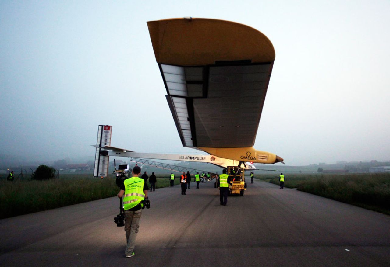 เครื่องบินพลังแสง อาทิตย์ลำแรกของสวิตฯ บินด้วยพลังงานที่ได้จากแสงแดด ที่ติดเซลล์รับแสง ตามปีกยาว 64.3 เมตร เตรียมจะออกบินไกลระหว่างทวีปเที่ยวแรกจากยุโรป ไปยังเมืองราบัต ประเทศโมร็อกโก.