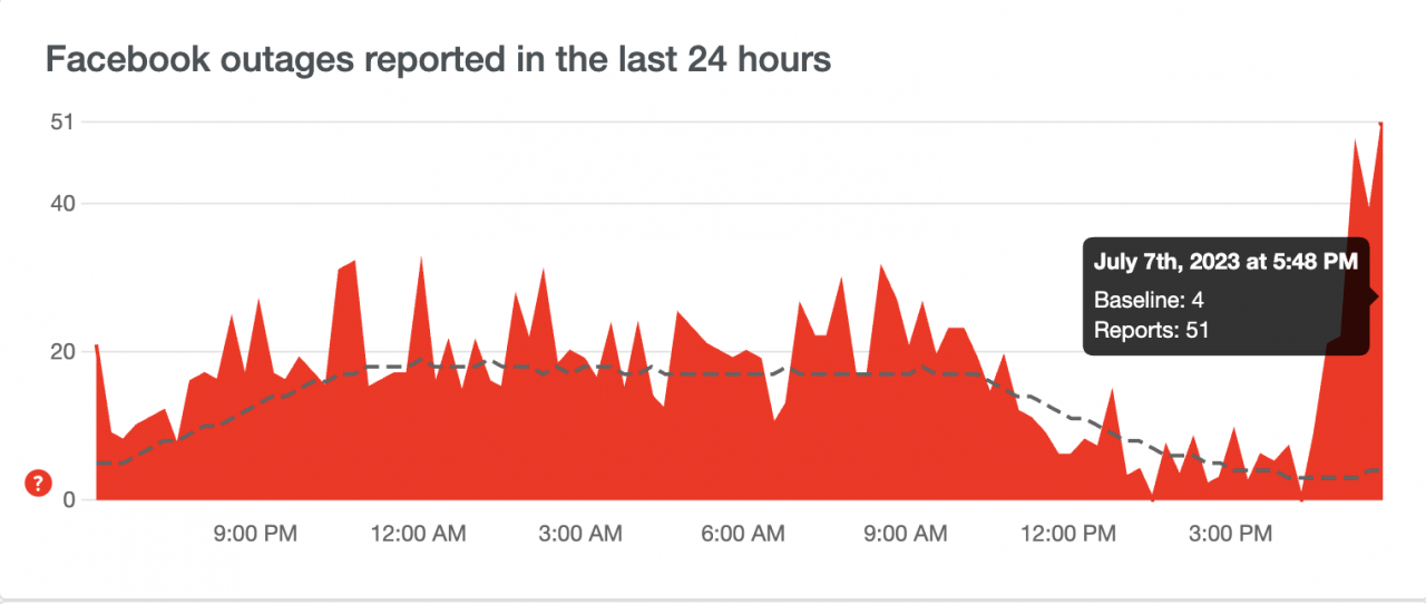 ข้อมูลจากเว็บไซต์ Down Detector พบว่าบริการของเมตา ไม่ว่าจะเป็นอินสตาแกรม และเฟซบุ๊ก ไม่สามารถให้บริการเป็นปกติในช่วงเวลา 17.48 น. ตามเวลาท้องถิ่นประเทศไทย