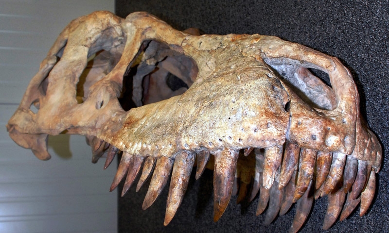 ภาพซากโบราณหัวกะโหลก ของไดโนเสาร์ไทรันโนเซารัส ซึ่งสหรัฐฯถูกทางมองโกเลียทวงคืน อ้างว่าเพราะมีถิ่นฐานบ้านเดิมอยู่ในมองโกเลีย.