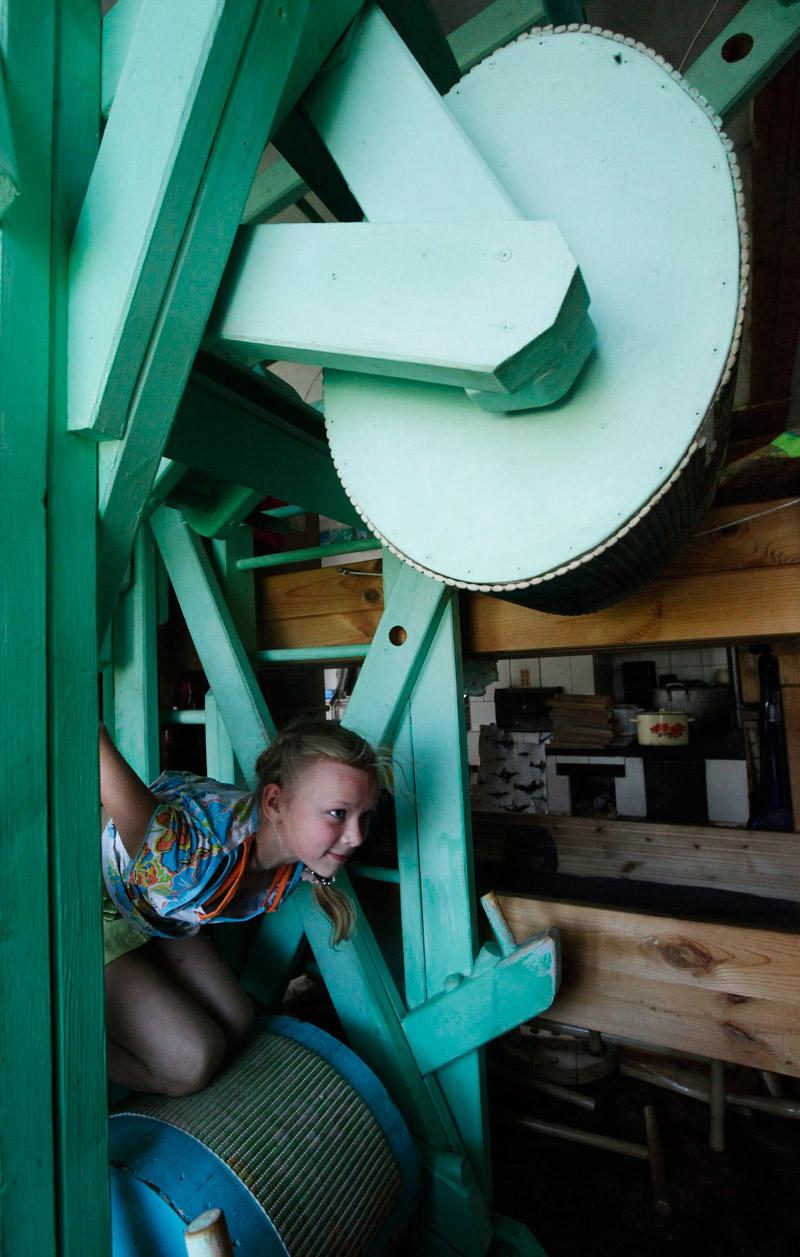 เด็กหญิงอนาสตาเซีย อายุ 11 ขวบ แสดงวิธีการใช้เครื่องออกกำลังทำด้วยไม้แบบหนึ่ง ซึ่งพ่อของเธอ วาเลอรี่ ติตอฟ นักจิตวิทยามหาวิทยาลัยเลนิน กราด ออกแบบสร้างขึ้น ด้วยไม้สนและไม้ซีดาร์ทั้งหมด โดยไม่ใช้โลหะเลย ที่ฟาร์มเลี้ยงผึ้ง เมืองคราสโนยาร์สก์ แคว้นไซบีเรีย ใช้ได้ทั้งในการเพาะกายและกายภาพบำบัด เป็นที่นิยมอย่างมากของนักลงทุนและนักธุรกิจ.