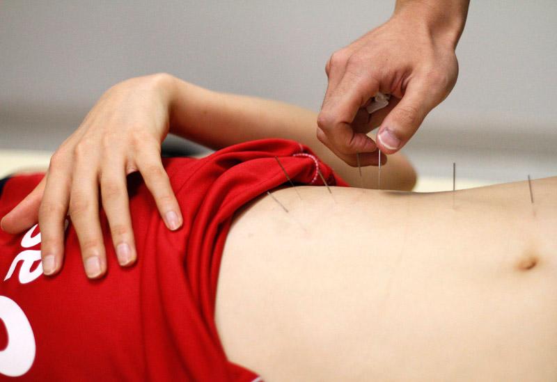 นักกีฬาทีมวอลเลย์บอลหญิง เกาหลีใต้ คิม โยน กุง รับการฝังเข็ม จากหมอประจำทีม ที่โรงยิม เมืองจินโชย เพื่อให้ร่างกายสมบูรณ์เต็มที่ ทีมนักกีฬา เกาหลีใต้พึ่งทั้งแพทย์แผนโบราณและสมัยใหม่ ในการบำรุงตัว.