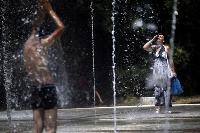 อากาศในย่านใจกลางกรุงเอเธนส์ ของกรีซเกิดร้อนวิปริต อุณหภูมิขึ้นสูงถึง 42 องศาเซลเซียส จนชาวเมืองต้องอาศัยน้ำพุช่วยดับความร้อน นับเป็นอากาศร้อนทำลายสถิติ เจ้าหน้าที่ได้จัดอาคารติดเครื่องทำความเย็นขึ้นหลายแห่ง เพื่อให้เป็นที่คลายร้อนกับประชาชน.