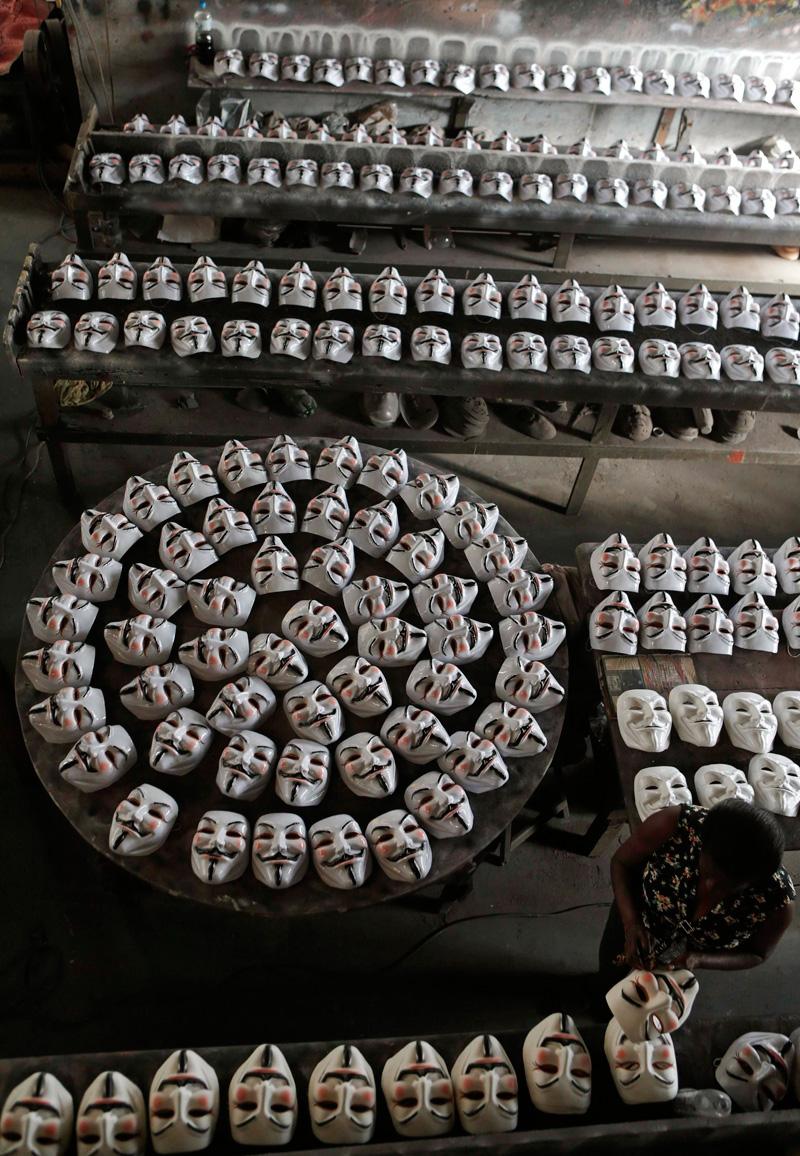 โรงงานผลิตหน้ากากขาว กาย ฟอล์ก ที่เมืองเซา กอนคาโล ใกล้กับริโอ เด จาไนโร ของบราซิล กำลังเร่ง ผลิตเป็นการใหญ่ เพราะนอก จากผู้ก่อการประท้วง ใน บราซิลเองจะใช้แล้ว ยังมีผู้ก่อการประท้วง ซึ่งเกิดขึ้นเอาอย่างตามชาติต่างๆ อีกหลายชาติ นิยมไปใช้ด้วย.