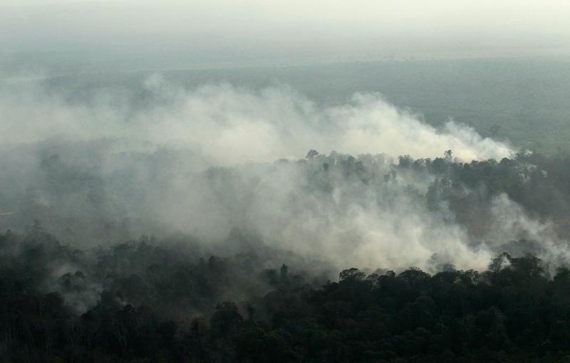 ภาพถ่ายทางอากาศ แสดงให้เห็นไฟป่า ที่เกิดจากการเผาป่าเพื่อแผ้วถางเอาที่ปลูกไร่ปาล์ม จนเกิดควัน โขมง โดนลมหอบพัดพา ไปอบชาติเพื่อนบ้าน อย่างสิงคโปร์และมาเลเซีย กับบางจังหวัดทางภาคใต้ของไทย ขณะนี้ตำรวจอินโดนีเซียกำลังดำเนินคดีกับบริษัทปลูกปาล์มใหญ่ 8 แห่งอยู่.