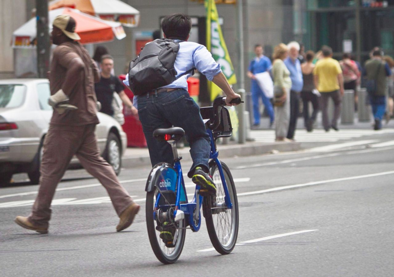 ภาพถ่ายผู้ใช้บริการเดินทางด้วยจักรยาน 2 ล้อ ที่เปิดบริการให้ยืมรถไปใช้ โดยไม่ได้สวมหมวกกันน็อก ในกรุงนิวยอร์ก ทั้งที่นายกเทศมนตรีบลูมเบิร์กของนิวยอร์ก เป็นคนเข้มงวดในการต่อต้านการสูบบุหรี่ การบริโภคอาหารมันๆ และหวานมาอย่างเข้มแข็ง แต่กลับยอมให้ผู้ใช้บริการขี่รถไปตามถนนได้โดยไม่ใส่หมวกกันน็อก.