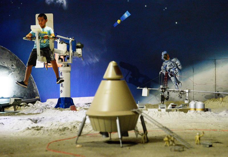 เด็กหนุ่มลองชุดอวกาศสำหรับเดินบนดวงจันทร์ ที่พิพิธภัณฑ์วิทยาศาสตร์และเทคโนโลยีในกรุงปักกิ่ง จีนได้ประกาศว่าจะส่งยานสำรวจ ไปลงดวงจันทร์ตอนปลายปีนี้ จีนถือว่าแม้จะต้องลงทุนเป็นเงินหลายพันล้านบาทแต่ก็เป็นการยกฐานะของตนใน ระดับโลกขึ้นสูง และเป็นการแสวงหาความรู้ความชำนาญเพิ่มขึ้น.