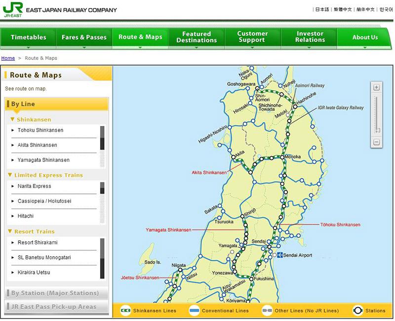 ถ้าลองเข้าเว็บไซต์ของบริษัทรถไฟญี่ปุ่น โดยเฉพาะ JR East ซึ่งเป็นบริษัทรถไฟรายใหญ่ที่สุดและดูแลเส้นทางรถไฟรอบพื้นที่นครหลวงโตเกียว (http://www.jreast.co.jp/e/) จะพบว่าข้อมูลทั้งหมดเป็นภาษาอังกฤษแบบครบถ้วน มีรายละเอียดครบครันไม่ว่าจะเป็น