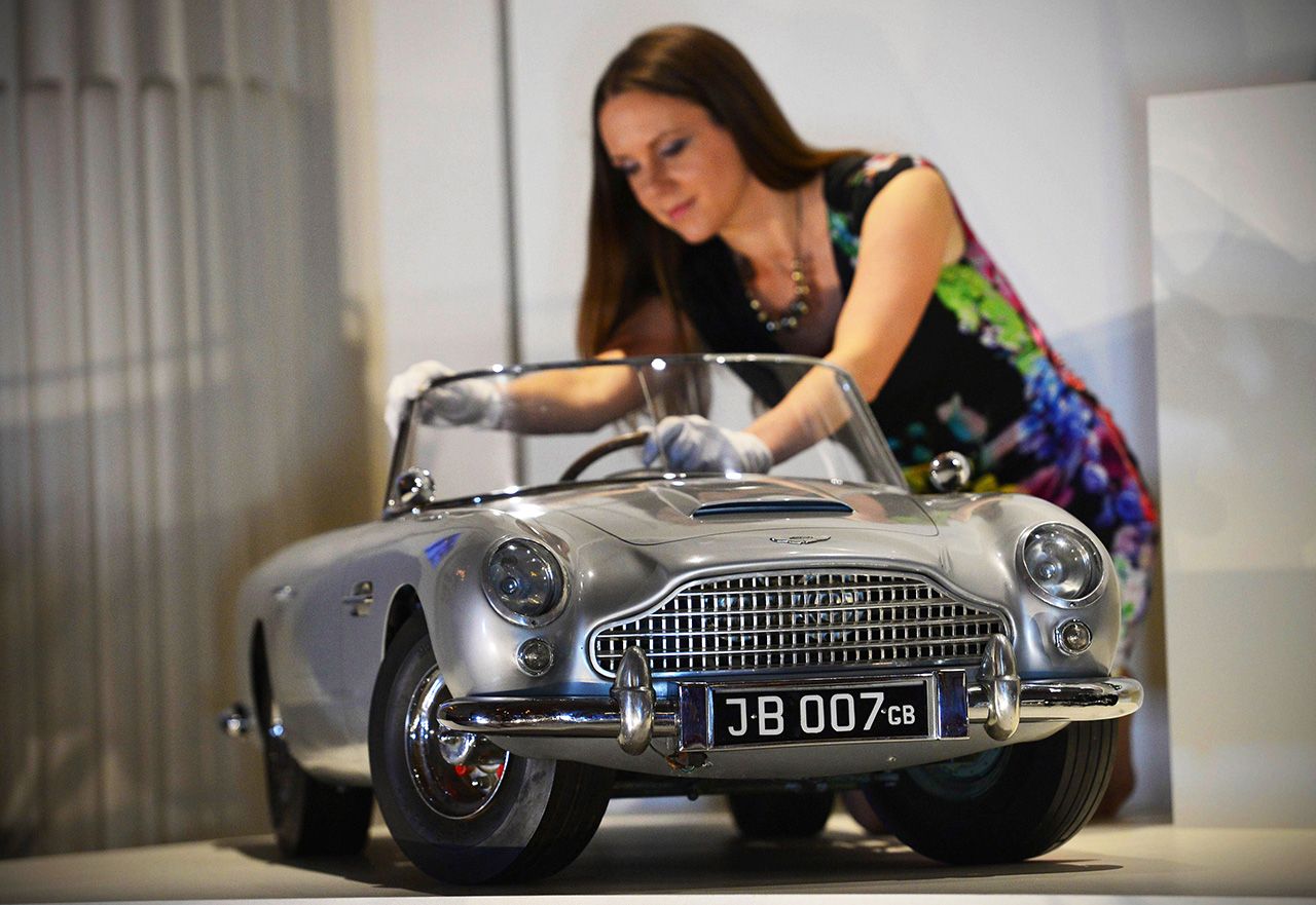 พนักงานขัดถูรถยนต์จำลอง รถเจมส์ บอนด์ ดีบี 5 คันเล็ก ซึ่งบริษัทรถยนต์แอสตัน มาร์ติน สร้างขึ้นเป็นพิเศษ ถวายเจ้าฟ้าชายชาร์ลส์ ของอังกฤษ เมื่อ พ.ศ. 2538 นำออกแสดงในงานแสดงเกี่ยวกับราชวงศ์อังกฤษ.