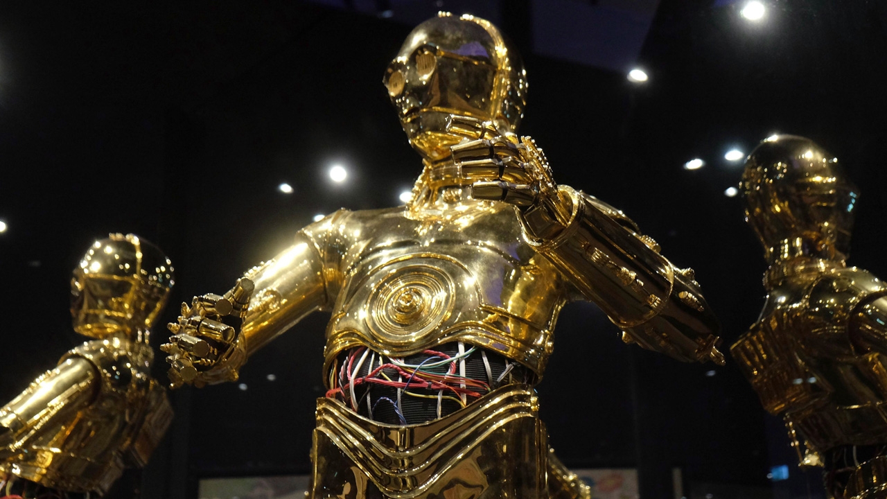 รูปปั้นตัว “ซี3-พีโอ” จากภาพยนตร์นิยายวิทยาศาสตร์เรื่อง “สตาร์ วอร์ส” ตั้งโชว์อยู่ที่งานแสดงชื่อ “อวกาศภายนอก-อวกาศน่าเร้าใจ” จัดขึ้นที่กรุงบอนน์ ประเทศเยอรมนี แสดงในหัวข้อเกี่ยวกับอวกาศภายนอก แรงโน้มถ่วง มนุษย์ต่างดาว ดวงจันทร์ ดวงอาทิตย์ จรวดเดินทางไปยังหลุมดำ และจานบิน.