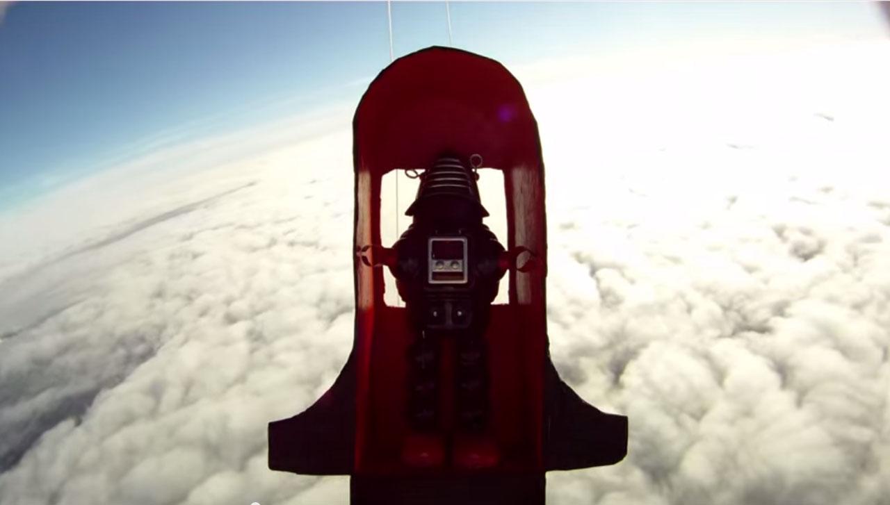เป็นการถ่ายทำส่วนหนึ่งของวิดีโอเพลง ของ James Trosh และเพื่อนของเขา โดยการใช้กล้อง gopro ติดไว้กับหุ่นยนต์แล้วลอบขึ้นฟ้าไปพร้อมๆ กับบอลลูน โดยมีการบันทึกภาพเอาไว้ หลังจากกล้องขึ้นไปสูงถึง 95000 ฟุต ก็ตกลงมาสู่พื้นดิน และภาพที่ได้ทั้งหมดน่าทึ่งจริงๆ ดูเลย ห้ามพลาด! (ชมคลิป)