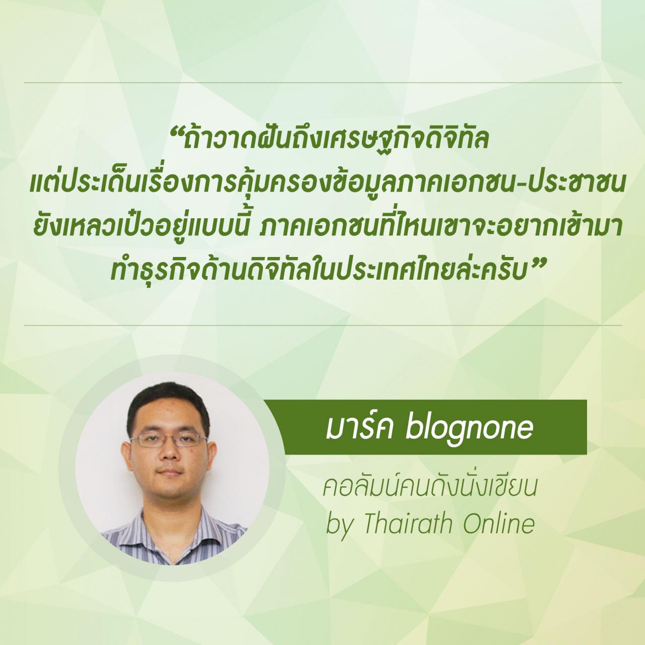 ผมขอฝากประเด็นนี้ไปยังผู้ที่เกี่ยวข้องว่า ถ้าวาดฝันถึง “เศรษฐกิจดิจิทัล” แต่ประเด็นเรื่อง “การคุ้มครองข้อมูลภาคเอกชน-ประชาชน” ยังเหลวเป๋วอยู่แบบนี้ ภาคเอกชนที่ไหนเขาจะอยากเข้ามาทำธุรกิจด้านดิจิทัลในประเทศไทยล่ะครับ
