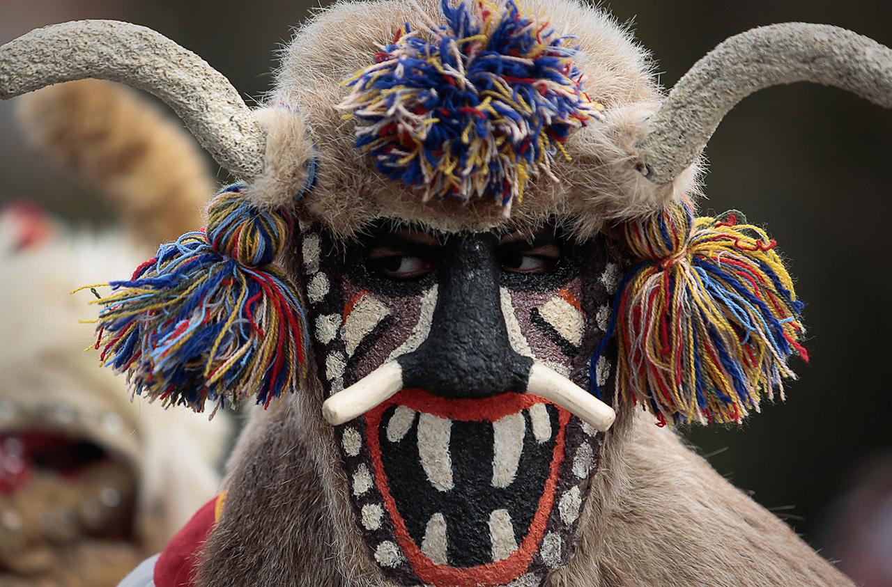 นักเต้นระบำสวมหน้า กากของบัลแกเรีย วาดลวดลายในงานมหกรรมกีฬาสวมหน้า กากระหว่างชาติ ที่เมืองเปอร์นิก ของบัลแกเรีย งานมีกำหนด 3 วัน เพื่อแสดงพิธีกรรมดึกดำบรรพ์ ของบัลแกเรีย.