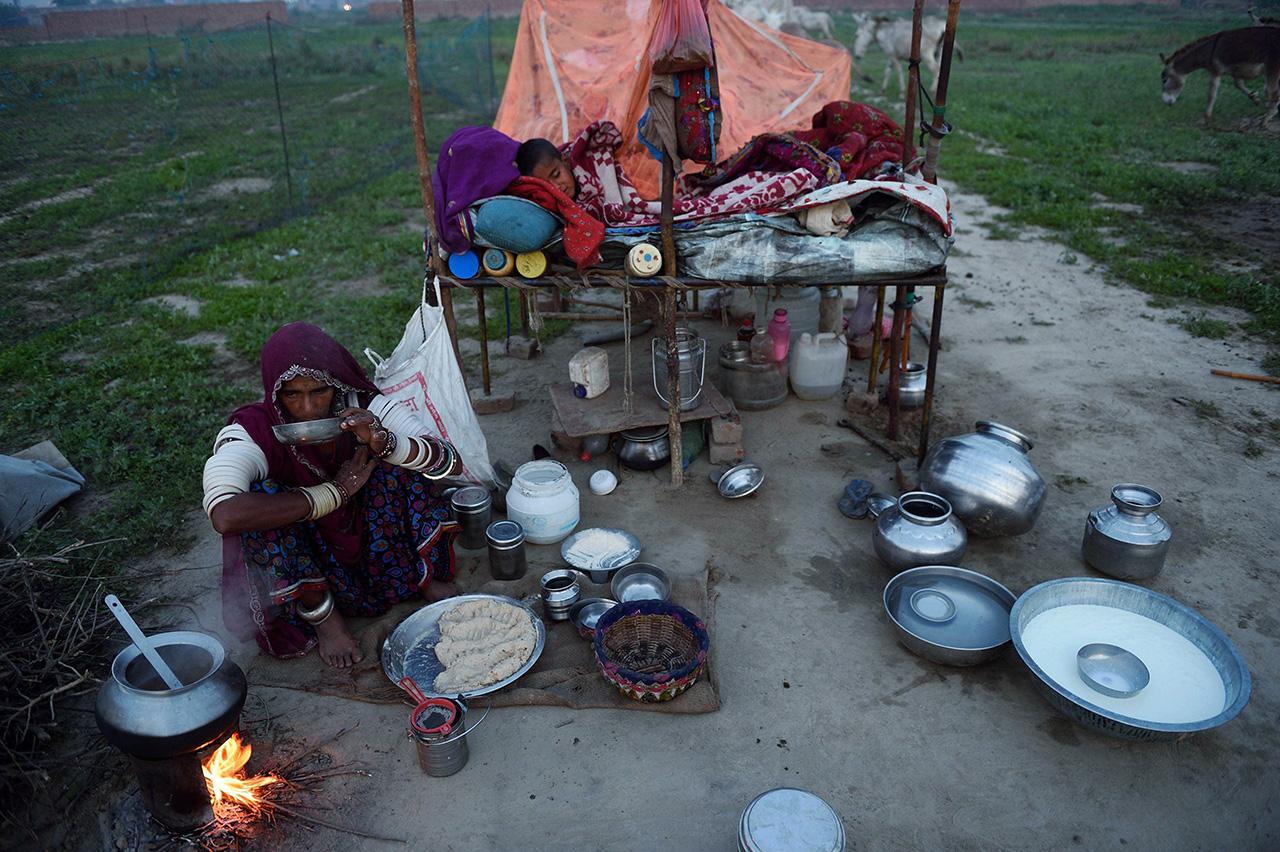 ชนเผ่าชาวอินเดียคงคาเลี้ยงแกะพเนจร จิบชาไปด้วย ขณะที่ทำอาหารเช้าสำหรับครอบครัว ที่ค่ายเมืองศิกรี เขตฟาริดาบัด ทางใต้กรุงนิวเดลี ลงมา 50กม. เกือบจะทั้งปีที่พวกเขาจะต้องคอยต้อนฝูงแกะ 2,500 ตัว ไปคอยหาแหล่งหญ้าแห่งใหม่ อาศัยขายลูกแกะตัวผู้ กับขนแกะเป็นอาชีพ ในขณะที่ผู้ชายเป็นคนต้อนแกะไปกินหญ้าและรีดนม ส่วนผู้หญิงก็จะปรุงอาหารสำหรับครอบครัว รวมทั้งปั่นเนย เดินทางจากที่ตั้งค่ายแห่งหนึ่ง ไปยังที่ข้างหน้าทั้งปี จะแวะหยุดพักเมื่อพบแหล่งนํ้าเพื่ออาบนํ้าและซักเสื้อผ้า จะเดินทางกลับบ้านที่ในแคว้นราชสถานปีละครั้งเท่านั้น ในช่วง 6 เดือน พวกเขาจะหารายได้ประมาณ 133,056 บาท.