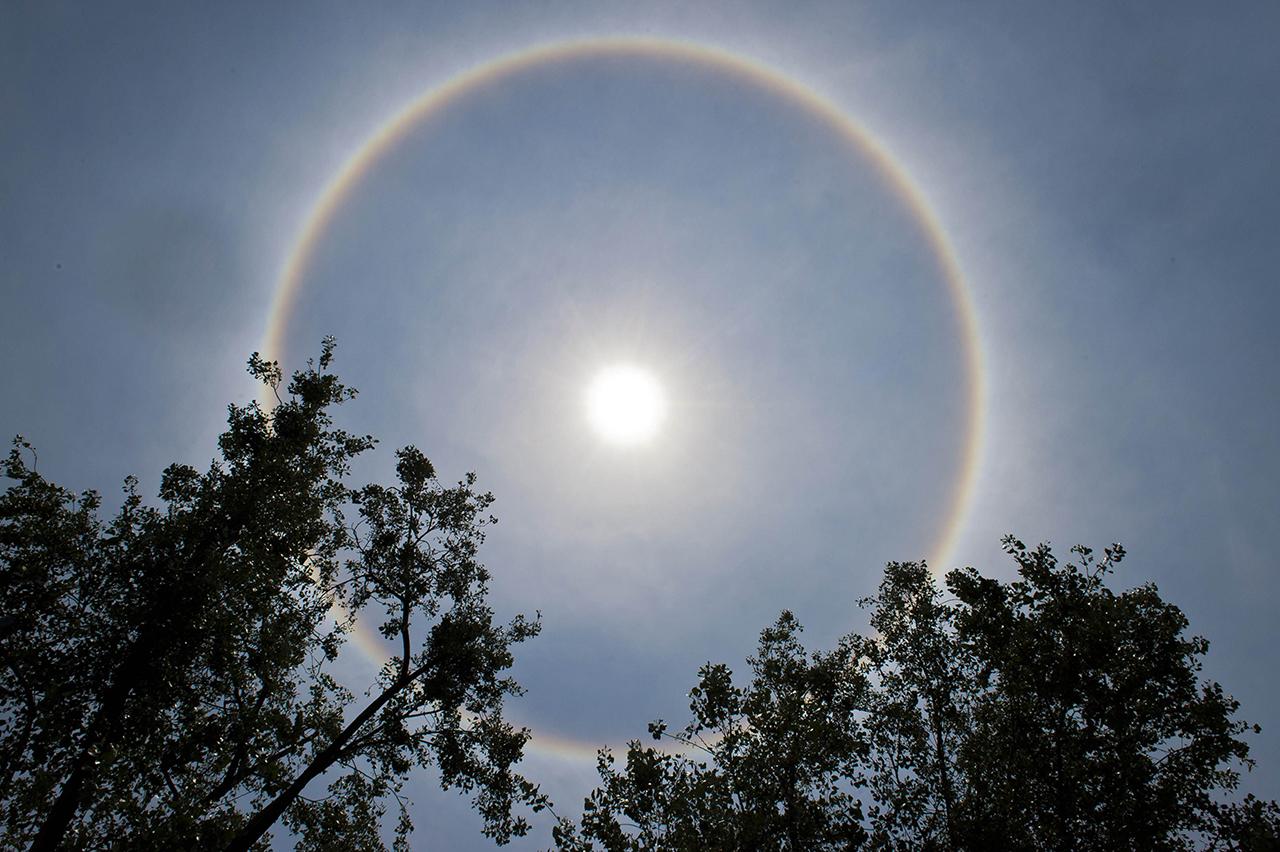 อาทิตย์ทรงกลดปรากฏขึ้นบนฟ้า เหนือกรุงเม็กซิโก ซิตี้ ปรากฏการณ์นี้เกิดขึ้นจากการสะท้อนแสงของผลึกน้ำแข็งเล็กๆ.