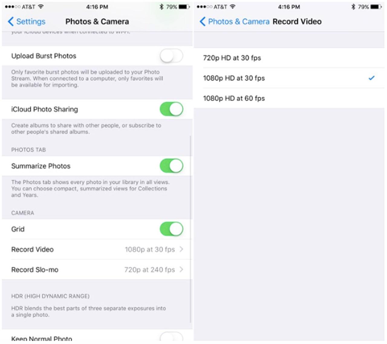 - สามารถเลือกว่าจะบันทึกวิดีโอด้วยความละเอียดแบบใด อาทิ 720p 30 fps, 1080p 30 fps, 1080p 60 fps