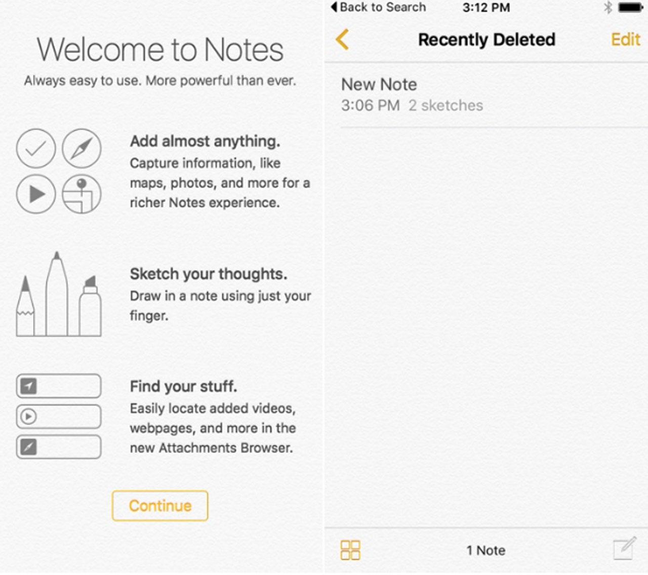 - ปรับปรุงแอพ Notes ให้สามารถใส่ To-Do, ภาพสเกตช์ และเรียกบันทึกที่เผลอลบกลับมาได้