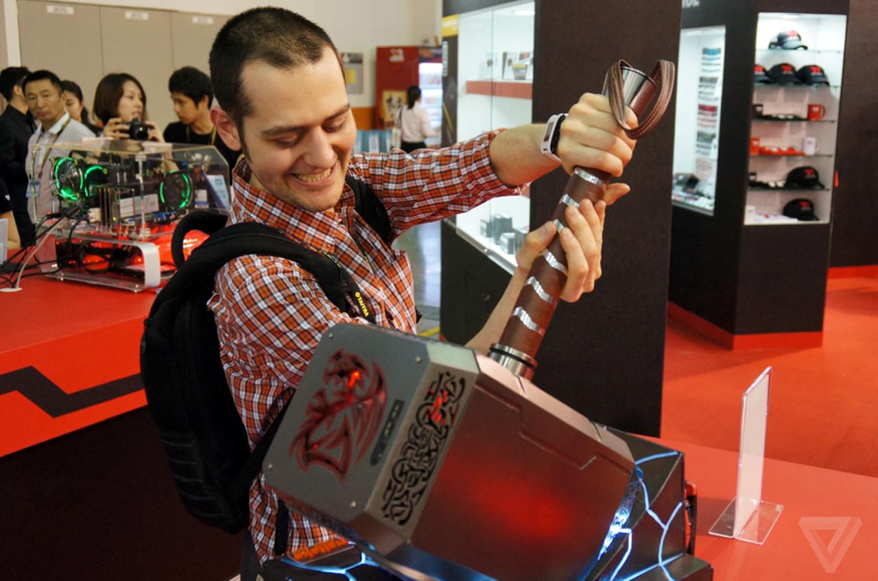 สำหรับเคสรูปทรงแปลกตาแต่เป็นที่คุ้นเคยของแฟนหนังชิ้นนี้ ถูกนำมาจัดแสดงในงานคอมพิวเทค (Computex 2015) ซึ่งจัดขึ้นที่ประเทศไต้หวัน เมื่อวันที่ 2-6 มิ.ย. เรียกว่าผ่านมาสดๆ ร้อนๆ แต่เชื่อว่างานดังกล่าวถือเป็นเพียงจุดเริ่มต้นของความน่าสนใจ และความภาคภูมิใจของคนไทยด้วย! ไม่ต้องงงว่าสาเหตุคือเรื่องอะไร เพราะเรากำลังจะบอกคุณว่า...เคสคอมพิวเตอร์ที่ได้รับการกล่าวขานถึงไอเดียที่น่าสนใจในการผลิตเคสทรงพลังในรูปค้อนแห่งเทพเจ้าธอร์นี้ มาจากฝีมือคนไทย!!!