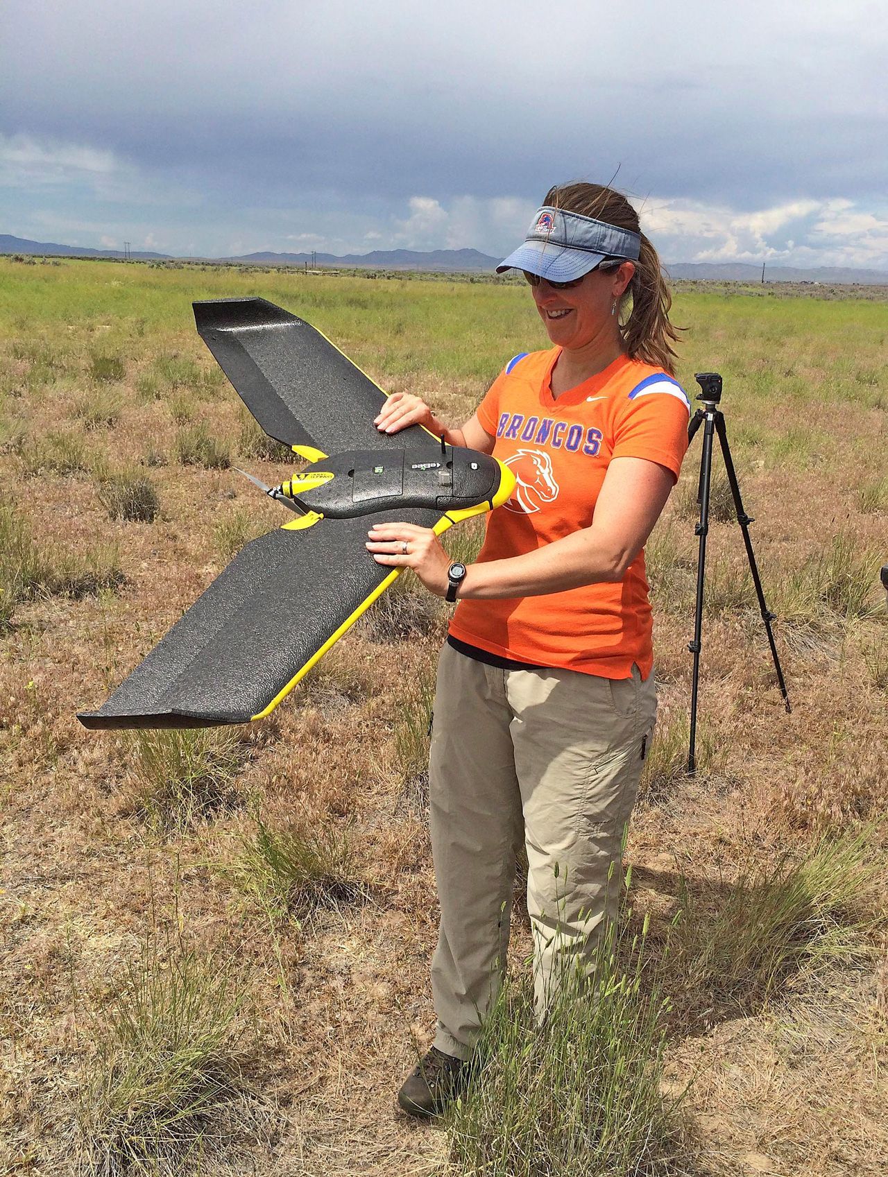 อาจารย์มหาวิทยาลัยแห่งหนึ่งที่รัฐไอดาโฮ เตรียมติดกล้องถ่ายภาพกับ “โดรน” เครื่องหนึ่ง ก่อนจะปล่อยขึ้นให้สังเกตการณ์ไฟป่าที่กำลังจะเริ่มมีชุกขึ้นในฤดูนี้.