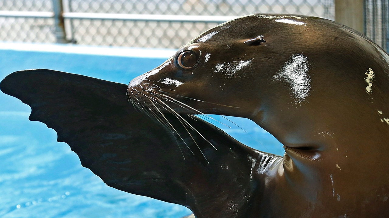 เจ้า “เพิร์ล” แม่สิงโตทะเลท้องแก่ ที่สวนสัตว์โอกลาโฮมา ของสหรัฐอเมริกา พักผ่อนอยู่เงียบๆรอเวลาคลอดที่ไม่ทราบว่าจะมาถึงเมื่อใด.