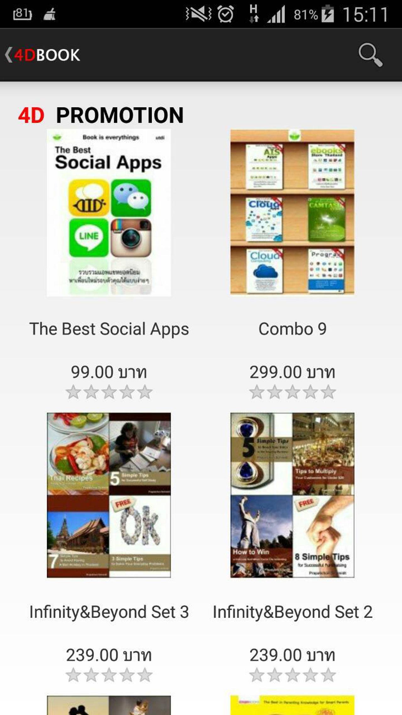 2. ขณะนี้ มีหนังสือหลากหลายประเภท มากกว่า 10,000 เล่ม จาก 41 หมวดหมู่ พร้อมให้ดาวน์โหลดไปอ่านจากแอพ 4DBook ซึ่งเมื่อดาวน์โหลดไปเก็บไว้แล้ว...ผู้ใช้จะสามารถเรียกอ่านหนังสือได้แม้ไม่ได้เชื่อมต่อกับอินเทอร์เน็ต ขณะเดียวกันในแอพดังกล่าวก็มีระบบจัดเก็บข้อมูลบนคลาวด์ ทำให้ไม่ต้องสิ้นเปลืองพื้นที่ภายในเครื่อง เพื่อจัดเก็บหนังสืออีกด้วย